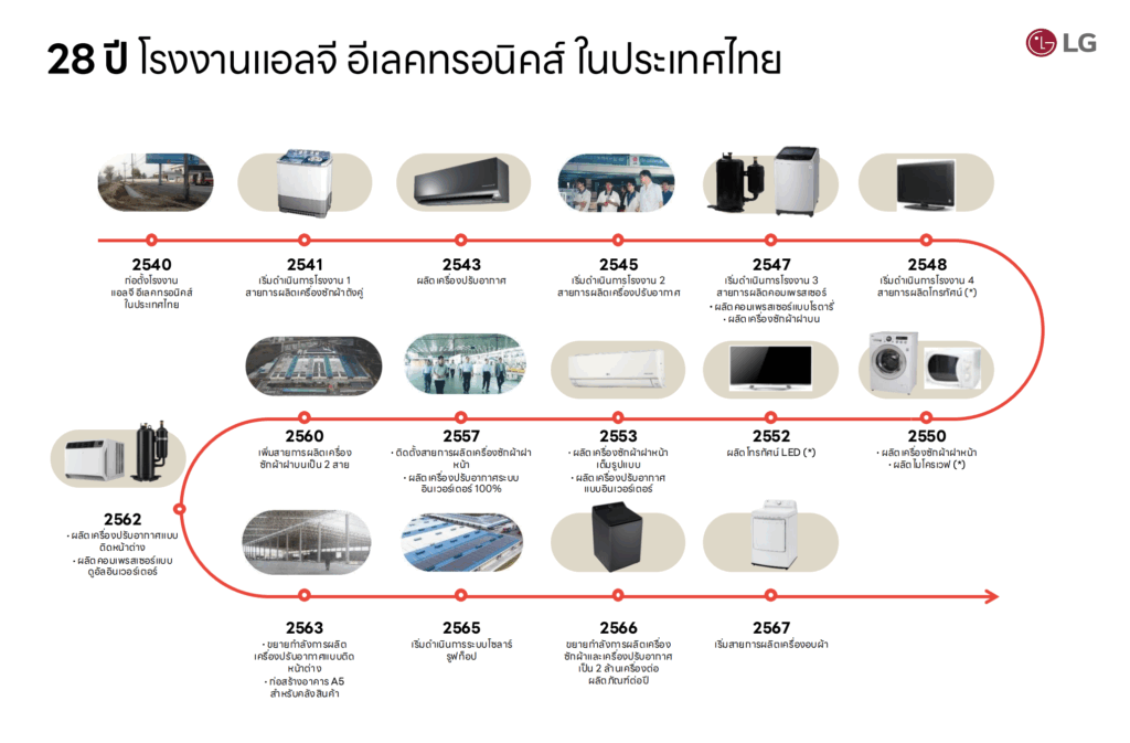 โรงงาน LG ในไทยยังมีสถานะเป็น โรงงานต้นแบบสำหรับการออกแบบและผลิตเครื่องซักผ้าฝาบนเครื่องซักผ้าฝาบนรุ่นใหม่ๆ ทั้งหมดของ LG ทั่วโลกจะต้องเริ่มต้นการผลิตที่ประเทศไทยก่อนเป็นที่แรก หลังจากนั้นจึงจะส่งต่อแบบพิมพ์เขียว แม่พิมพ์ ไปยังโรงงาน LG ใน เวียดนาม, อเมริกา หรือจีน เพื่อผลิตตาม