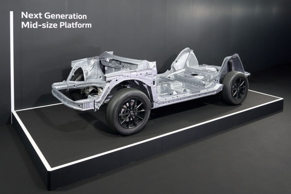แพลตฟอร์มเจเนอเรชันใหม่แบบไฮบริดขนาดกลาง ใช้การออกแบบที่แบ่งระบบหรือผลิตภัณฑ์ออกเป็นโมดูล แยกชิ้นส่วนเป็นโมดูลที่ใช้ร่วมกันได้ เช่น ห้องเครื่องยนต์และโครงสร้างใต้ท้องรถส่วนหลัง และโมดูลเฉพาะส่วน เช่น ห้องโดยสารด้านหลัง จะช่วยเพิ่มประสิทธิภาพในการพัฒนารถรุ่นใหม่