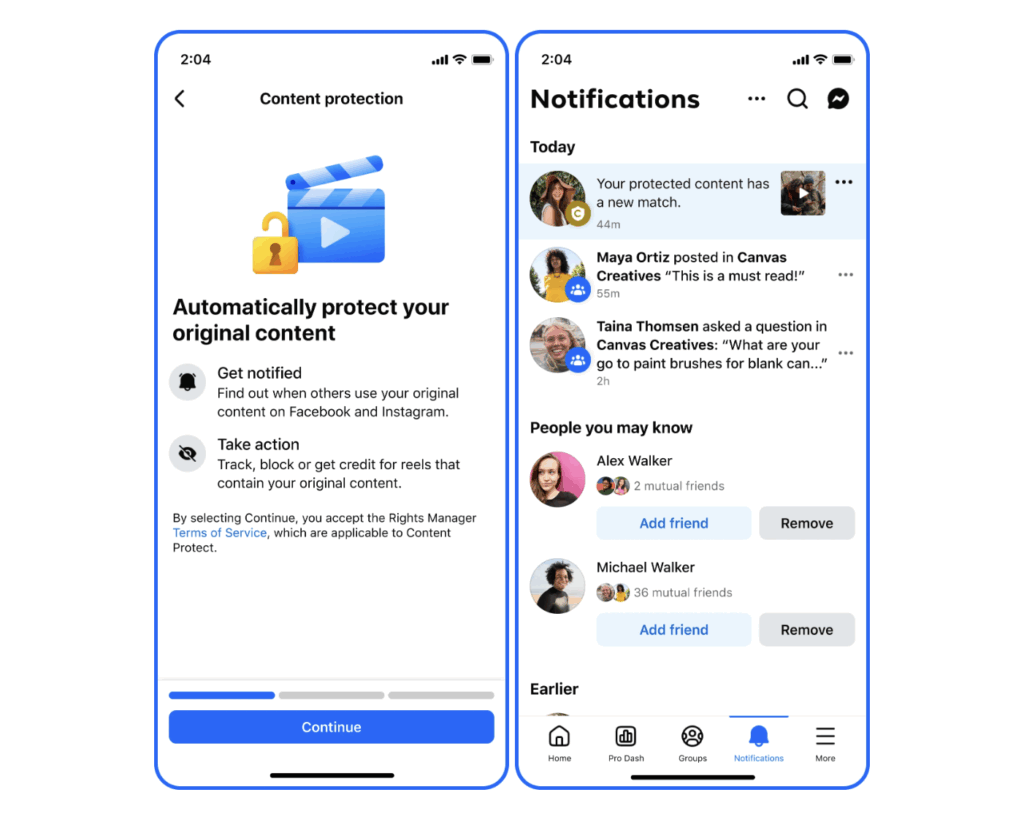 Facebook จึงแก้ปัญหาด้วยการเปิดตัวเครื่องมือใหม่ content protection เป็นฟีเจอร์บรมือถือที่จะตรวจจับเมื่อคลิปของครีเอเตอร์ถูกขโมยไปลงใหม่ ตรวจจับได้ทั้ง Facebook และ Instagram