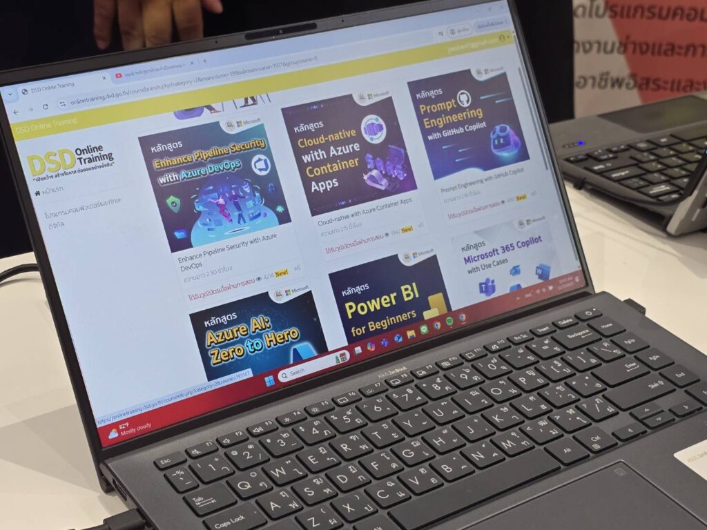 ซึ่งไมโครซอฟท์และกระทรวงแรงงานร่วมกันนำเสนอกว่า 280 หลักสูตรภาษาไทยบน DSD Online Training โดยไมโครซอฟท์เข้าไปช่วยสร้างเนื้อหาที่จำเป็นต่อแรงงานดิจิทัล ไม่ว่าจะเป็ พื้นฐานการใช้งานแอป Microsoft Office, การใช้งาน Copilot, AI เพื่อการท่องเที่ยว, พื้นฐานความปลอดภัยไซเบอร์