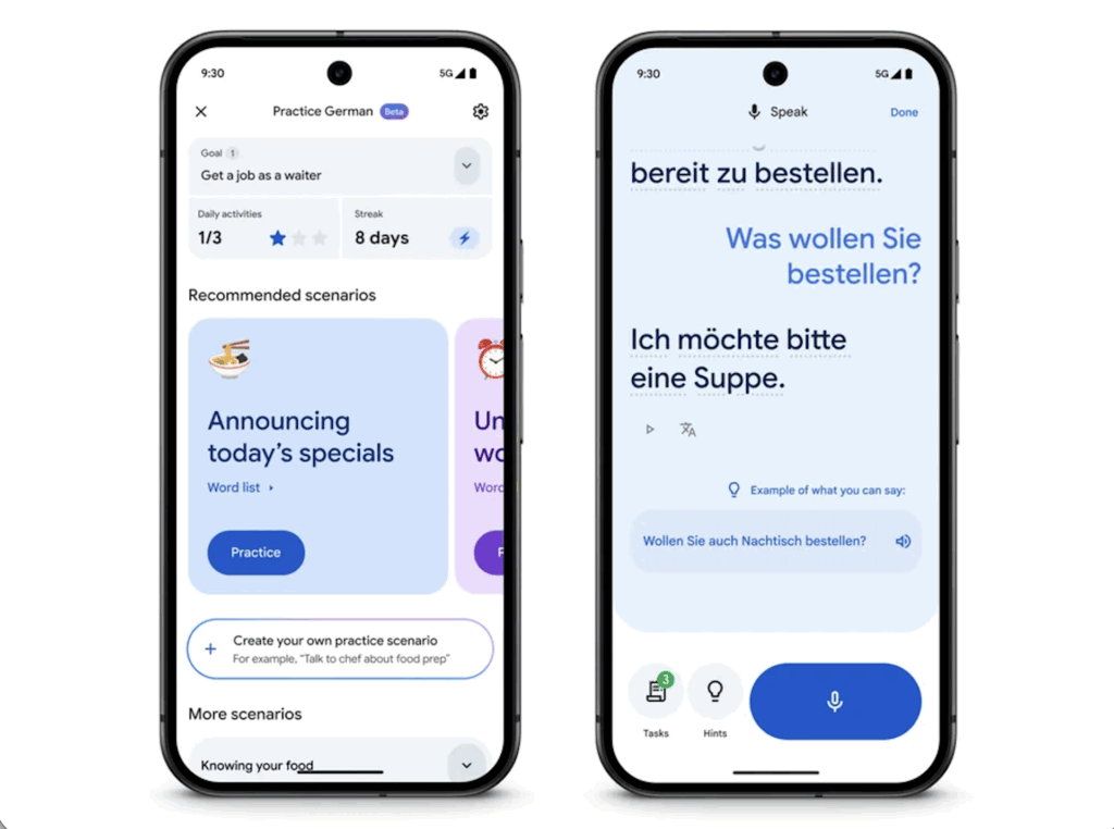 นอกจากนี้ยังเปิดตัวร่างใหม่ของ Google Translate เวอร์ชั่นเบต้า ใช้โมเดล Gemini ในเรื่องการแปลสดแบบ speech-to-speech ฟังการแปลแบบสดๆ ผ่านหูฟัง เมื่อเชื่อมต่อหูฟังเข้ากับอุปกรณ์แล้ว ให้กดปุ่ม live translation เลือกภาษาต้นทางและปลายทางเพื่อฟังและอ่าน transcript การแปลสดได้บนมือถือ