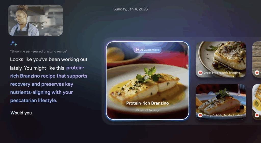 เทคโนโลยีที่เปิดตัวมาพร้อมกันคือ Vision AI Companion (VAC) นำ AI มาเป็นผู้ช่วยความบันเทิง สั่งเสียงผ่านรีโมทให้ปิดเสียงนักพากย์กีฬา หรือให้ลบเสียงแบกกราวด์กีฬาเพื่อโฟกัสกับการแข่งขันได้เต็มที่ตามความชอบ หรือถามข้อมูลเมนูอาหารจากคลิปที่ดูอยู่ โดยแสดงผลเป็นภาพคู่กันไปกับคลิปที่กำลังเล่นอยู่บนทีวี ส่งข้อมูลไปยังหน้าจอตู่เย็นในครัวได้เลย