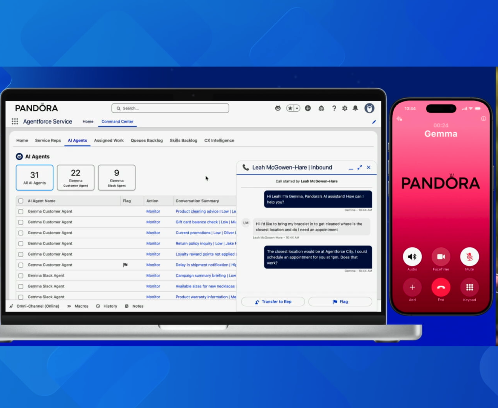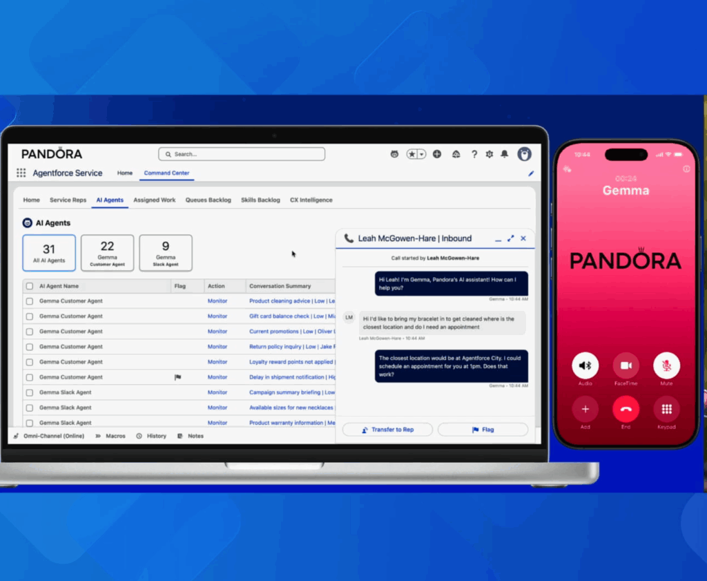 ไฮไลต์เด่นคือ Gemma AI Agent จากแบรนด์เครื่องประดับ Pandora ที่สร้างขึ้นบนระบบนี้ โดยในเดโม่  Gemma โชว์ทักษะการคุยตอบโต้กับลูกค้า พร้อมระบุตำแหน่งสาขาใกล้ที่สุดได้ทันที